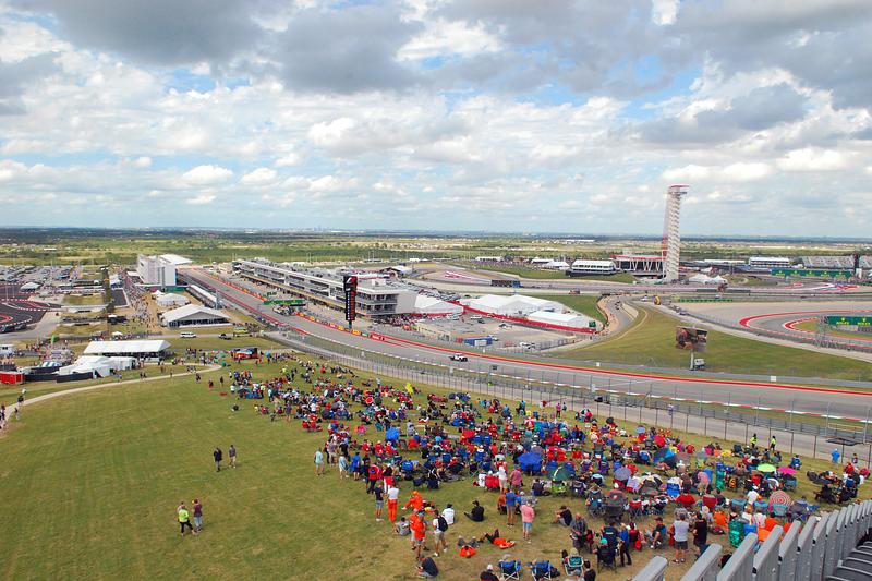 Looking from the outside of turn 1 towards turn 20. Circuit of the Americas, Austin, Texas. 2017.